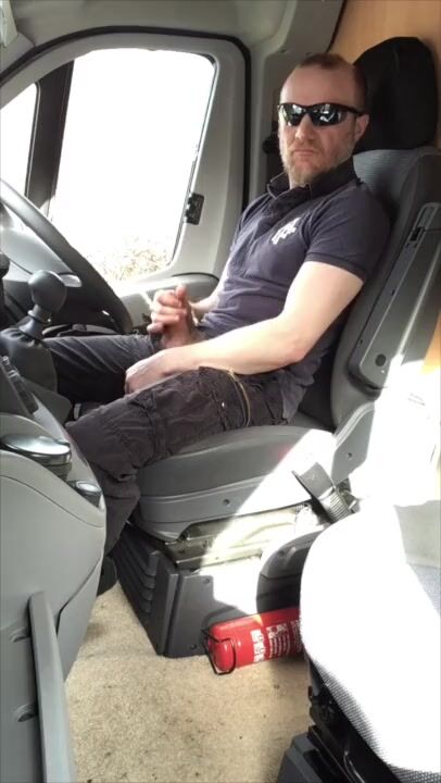 Muscular trucker wanks off and blows geysers of jizm over his tee-t-shirt
