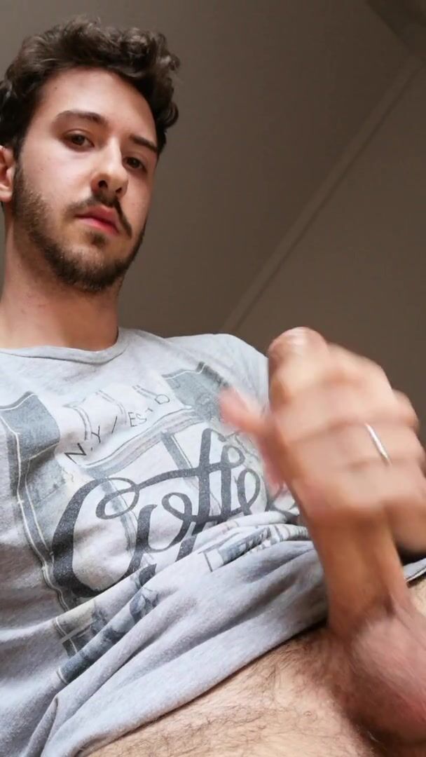 Italian teenie wanks his 8 inches rock hard-on and completes with a yam-sized jizz