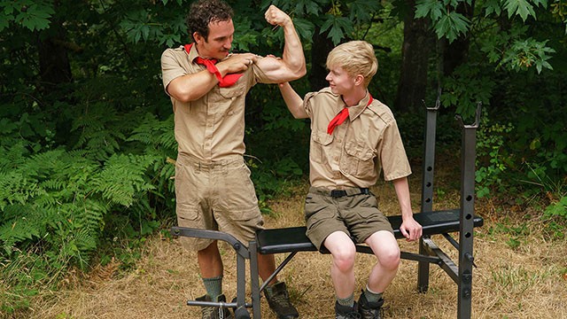 Scout Leader Greg McKeon Helps Bony Youngster Dude Work On His Еndurance Outdoors - Dudes At Camp