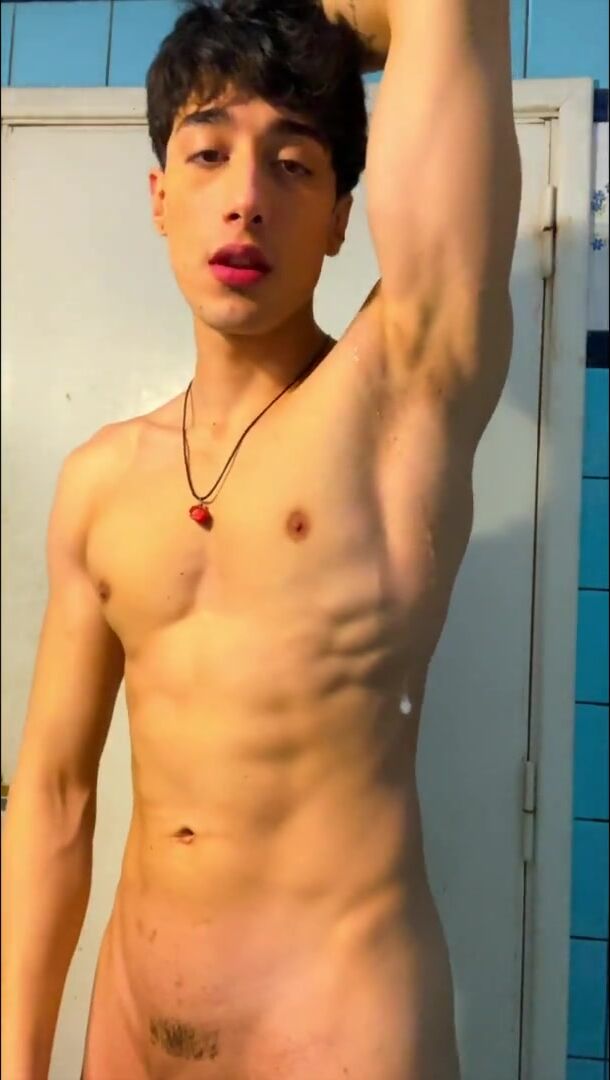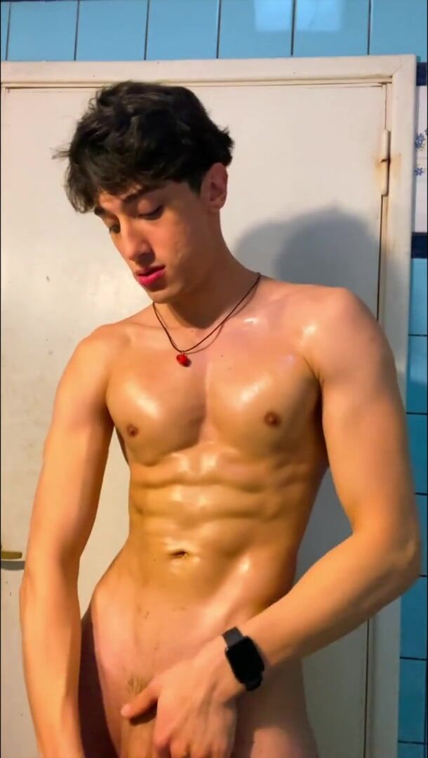 Flexing my armpits and oiling my bod in a pal's douche
