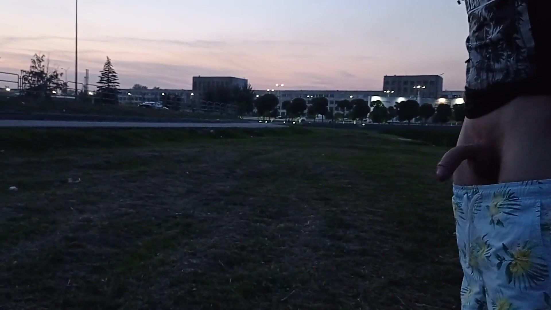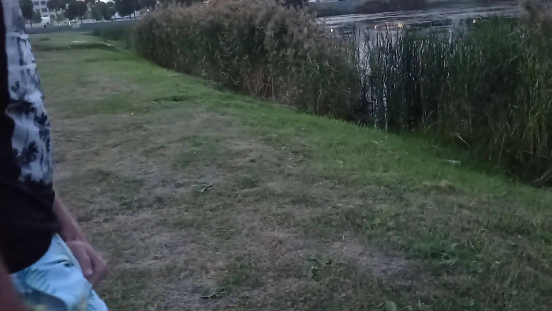 killer jacking off a pecker on the embankment of the plant. EXTREME