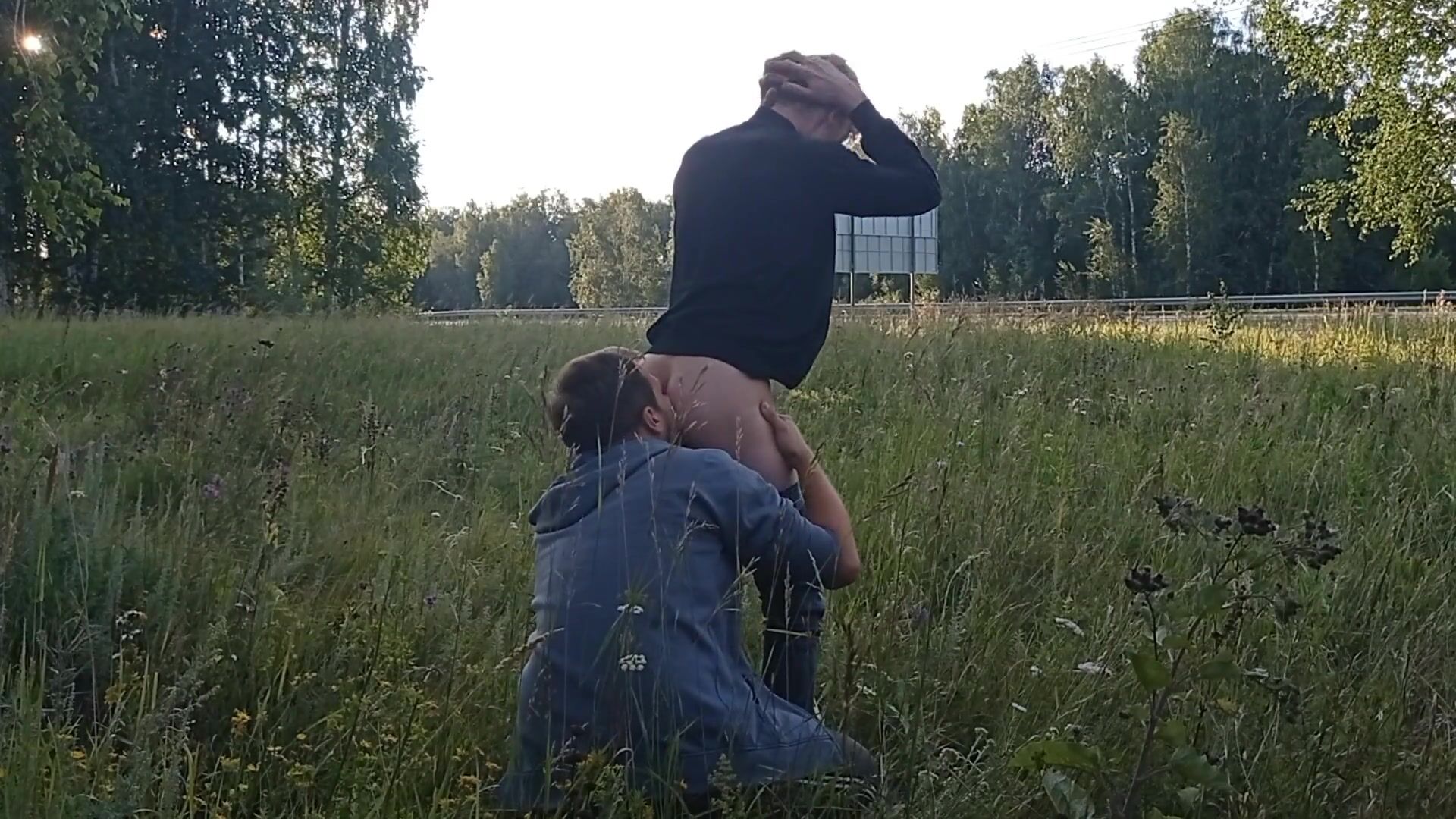 Fellate Off and palm job near a busy highway
