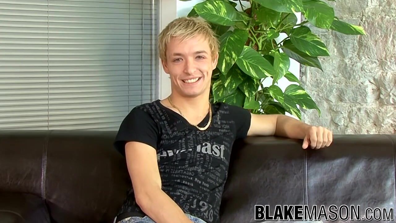 Sensual blondie UK twink opening up boner while interviewed