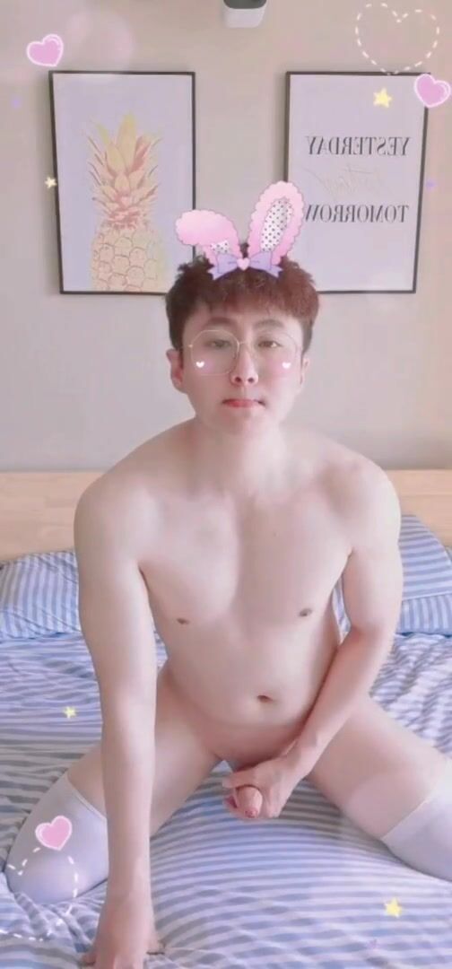 Cute little bunny demonstrates getting off to everyone