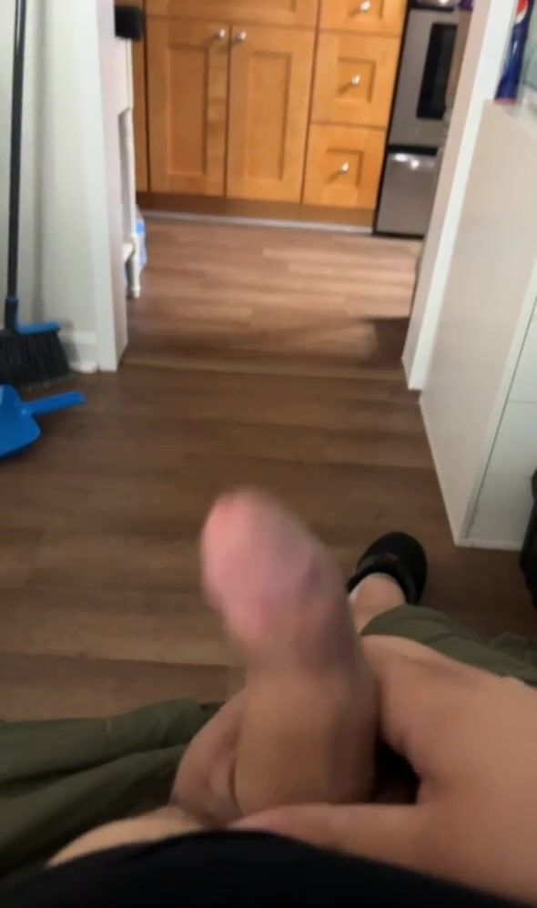 Chub wanks pink cigar on brink of sofa and shoots a explosion on belly