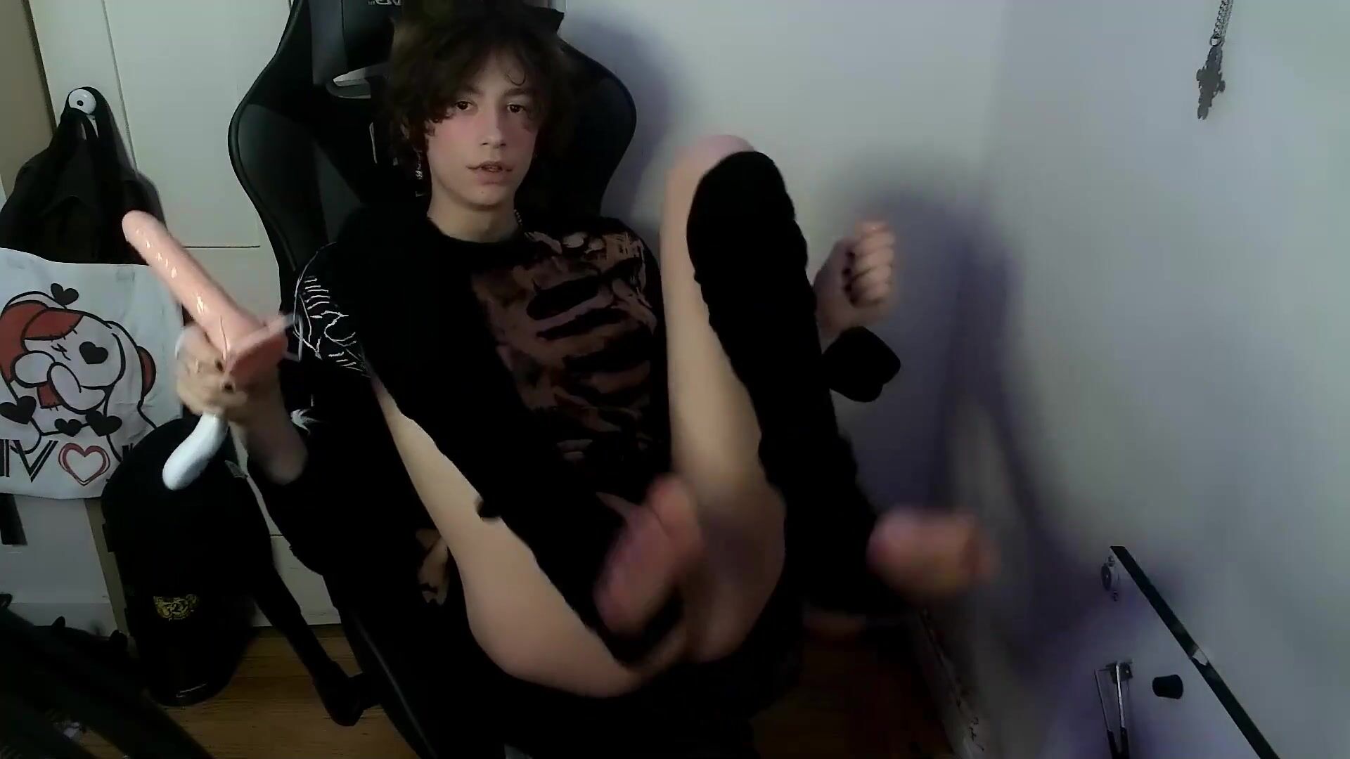 Punk Catboy Deep Throats Faux Pink Cigar And Bangs Bum With Jizz Lube !!!!!