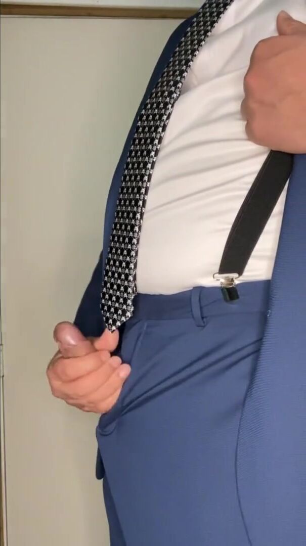 Faggot-For-Pay Puny pinkish cigar parent strokes off in business suit
