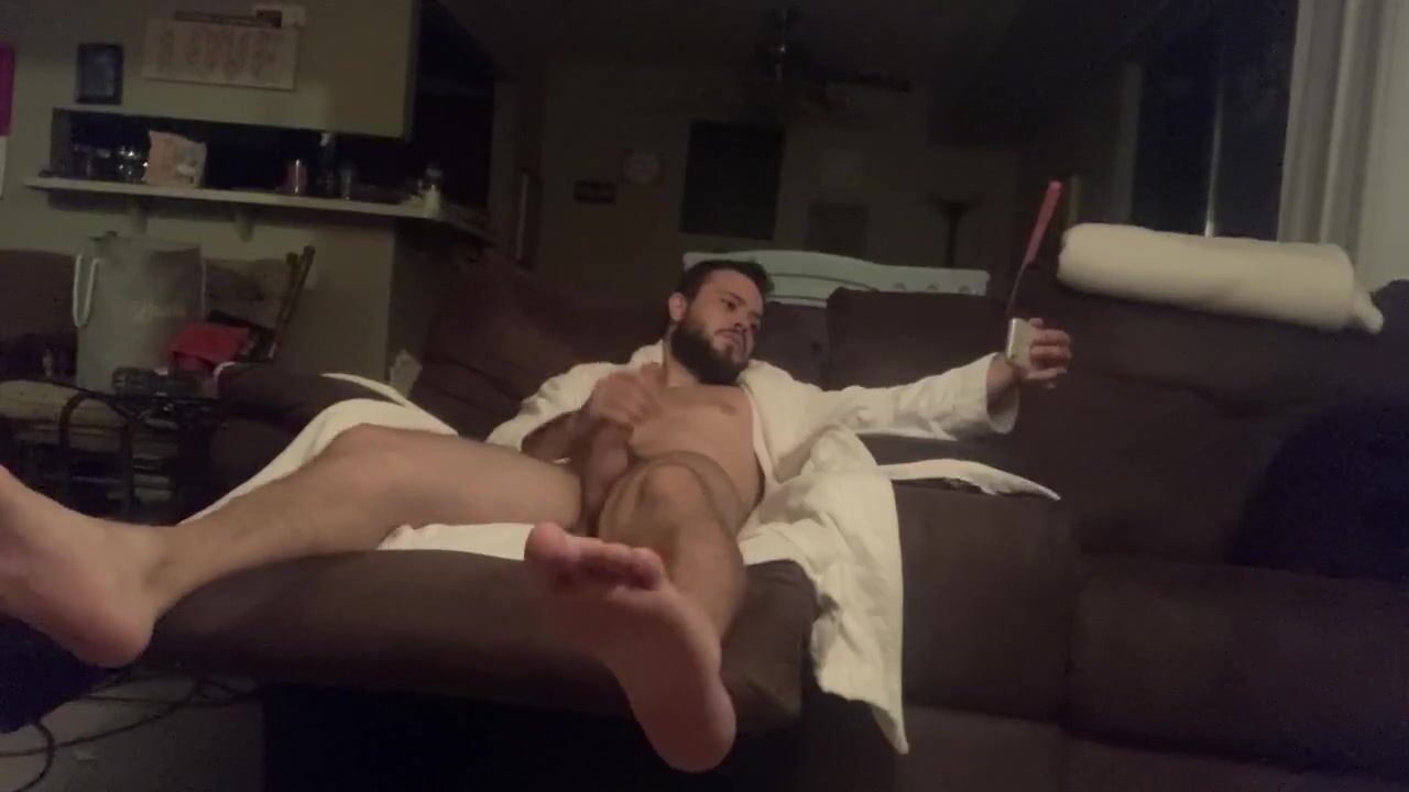 Dad finally Faps Off after strained day; smokes and jerks prick in his robe