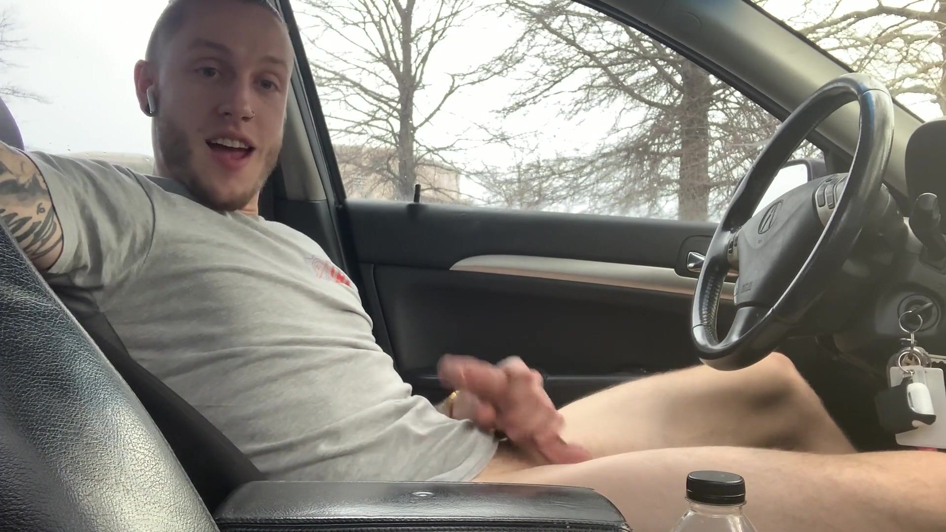 White boy blows a fountain yam-sized in car