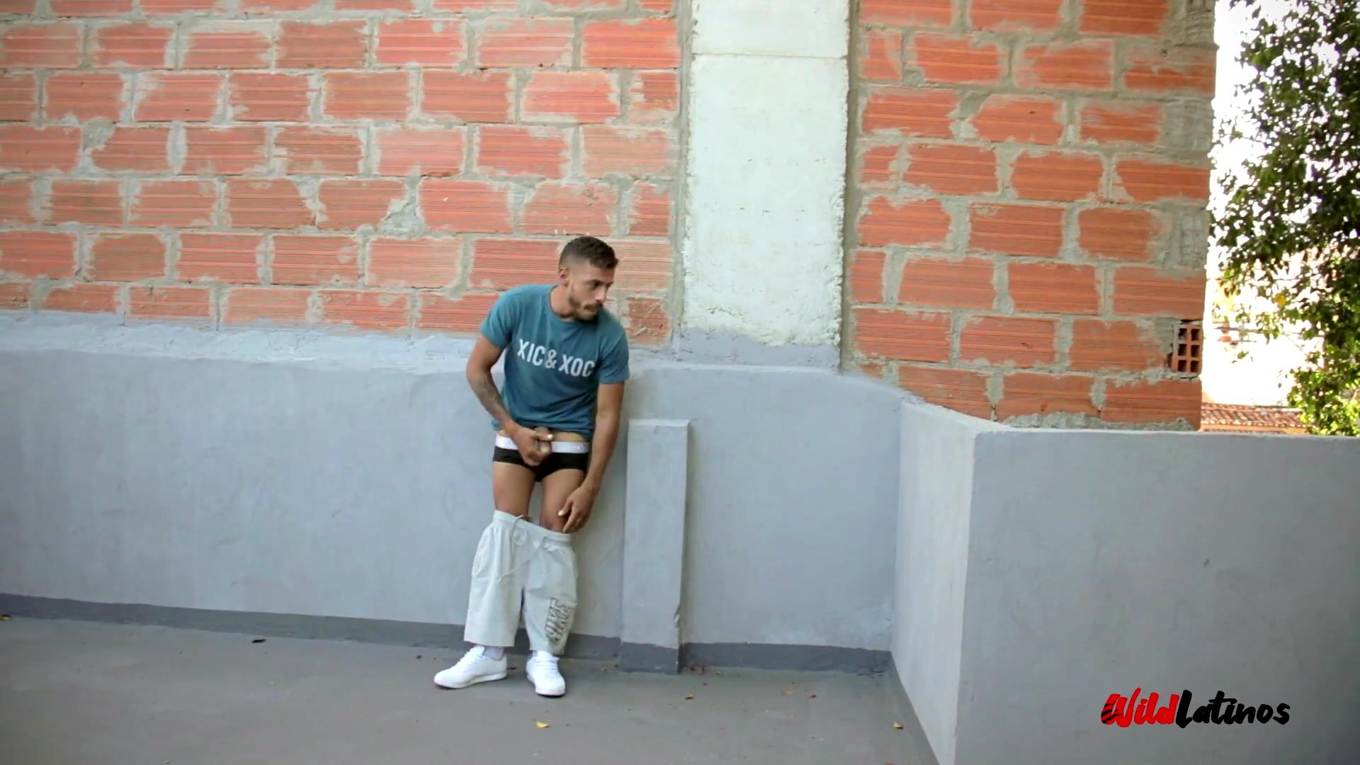 Draped Latino Father Wanking Off His Meaty Uncut Dinky Outdoors Risking Being Caught By A Neighbor