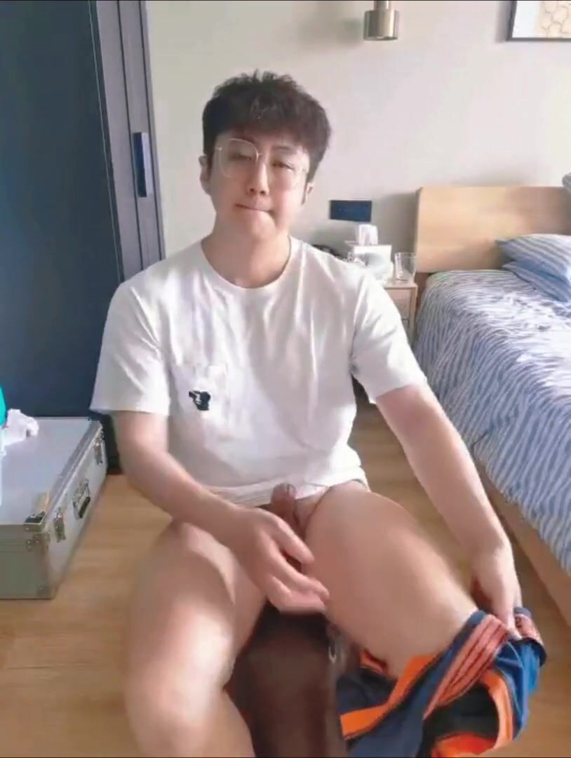 man in white t-t-tee-shirt jacks and blows a load