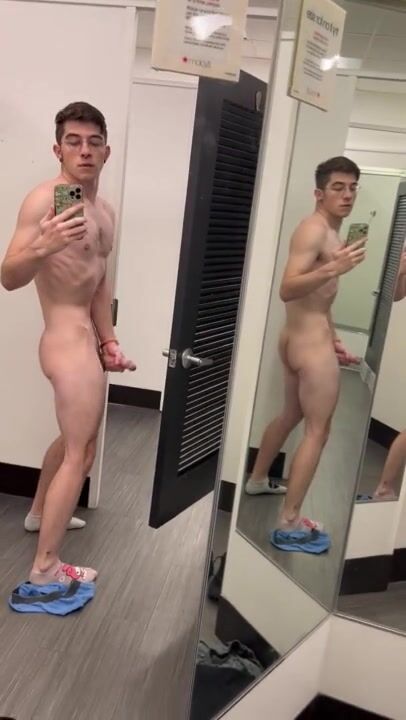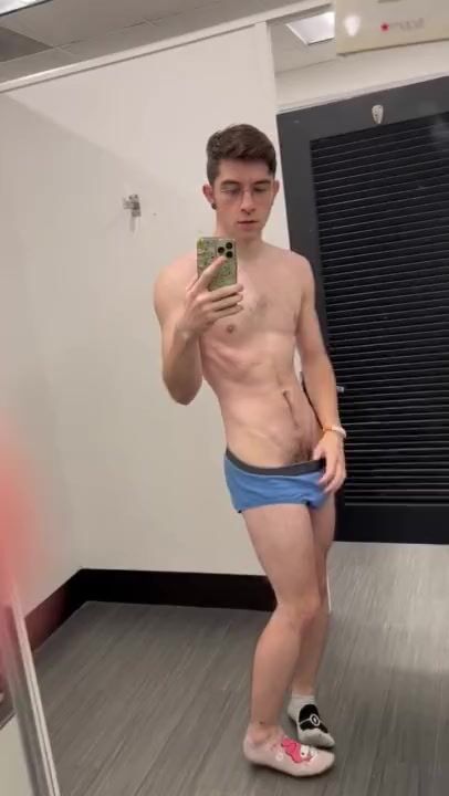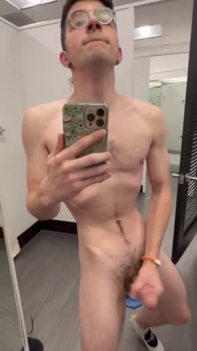 Lean nerdy lad dude unwraps and completes off in public dressing guest bedroom with door open