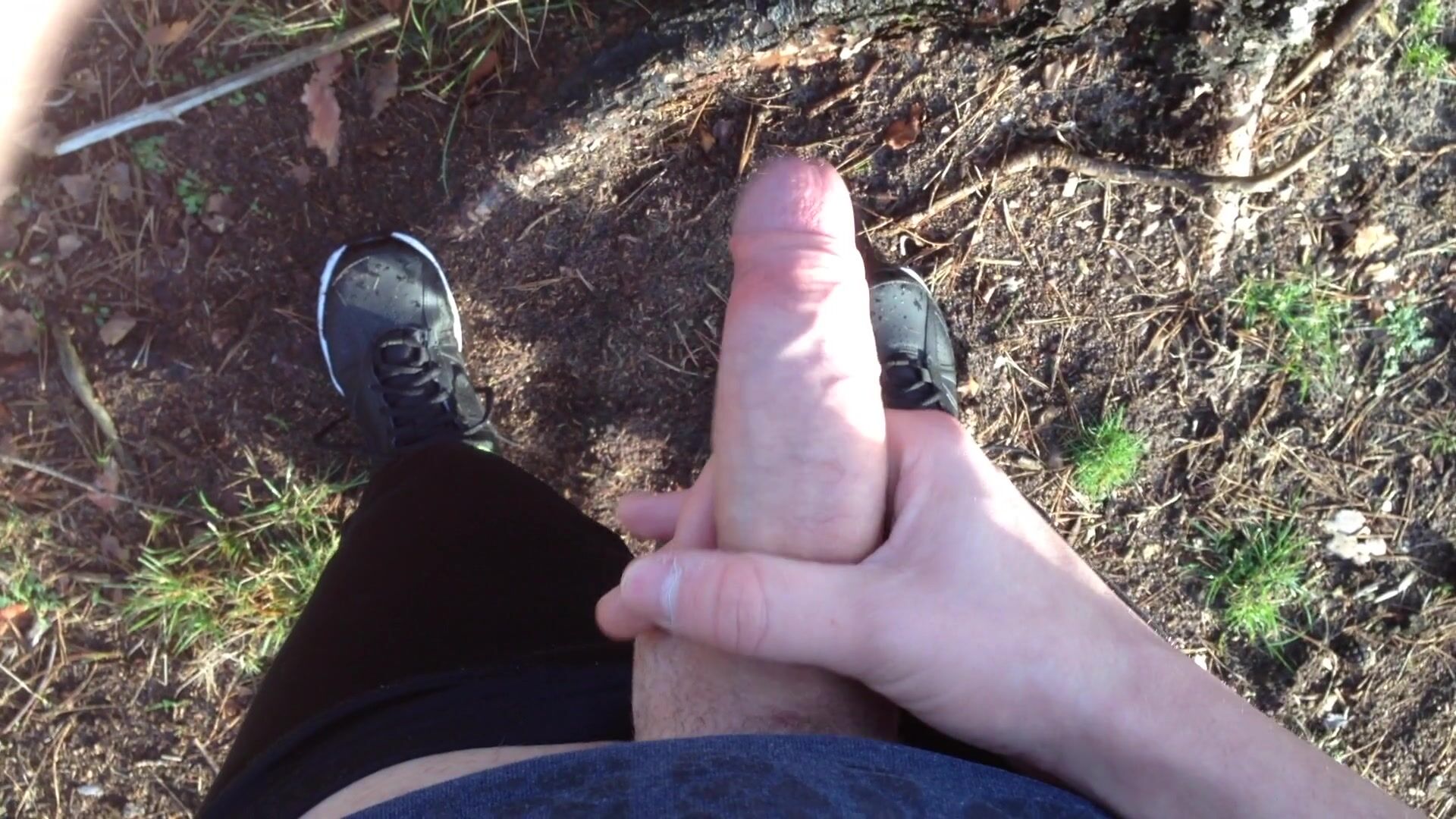 Draining my beef whistle and cumming in public - hd