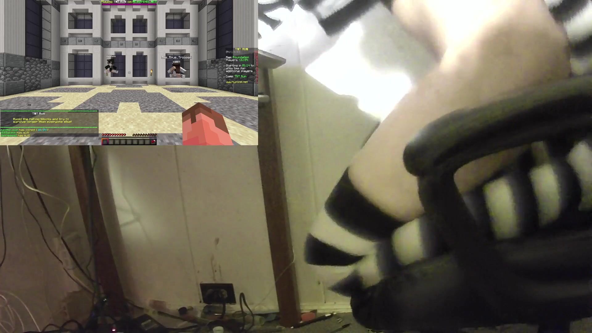 Riding a fake-trunk until I can strike a game of Minecraft TNT Run