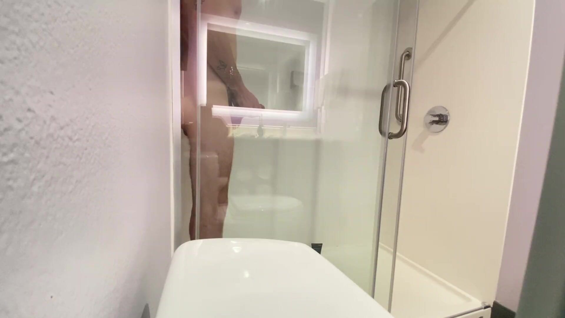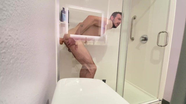 Straight folks highly first-ever time riding his gigantic white pound stick in hotel bathroom