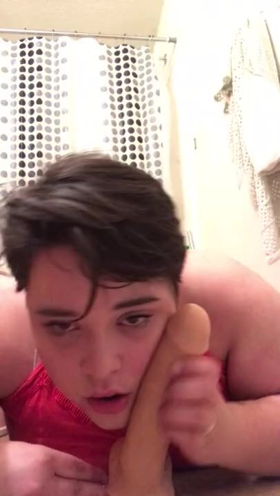 nice young femboy throats his fake-man rod