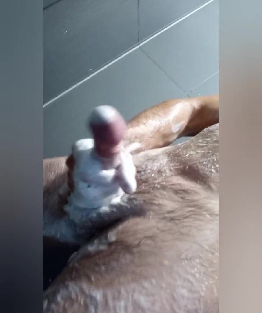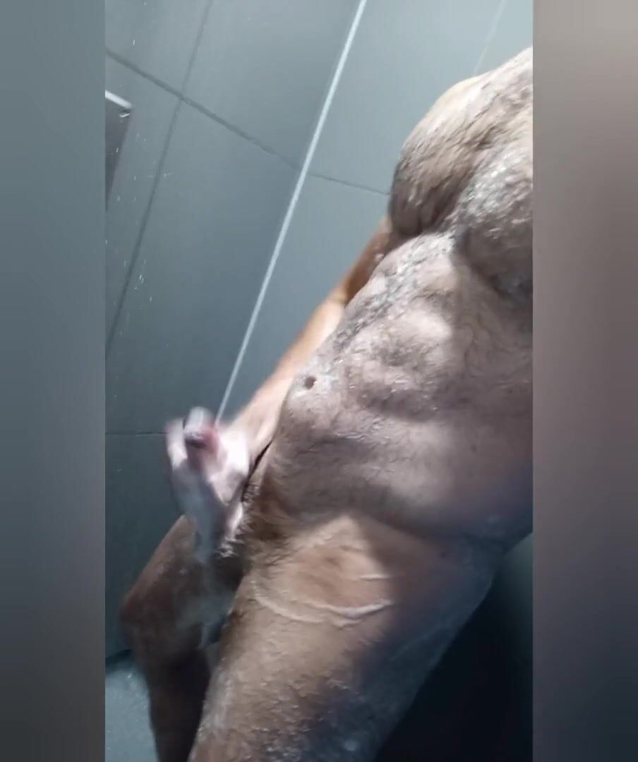 Happy finishing after a workout in public douche