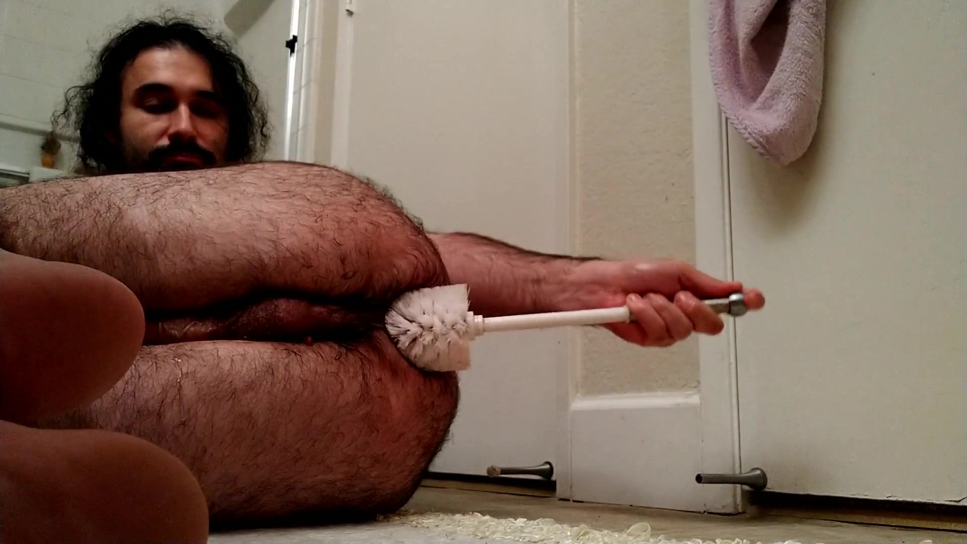 EXTREME toilet brush booty shag: insane cub nails own hungry penetrate-slot with rest room brush all the way in