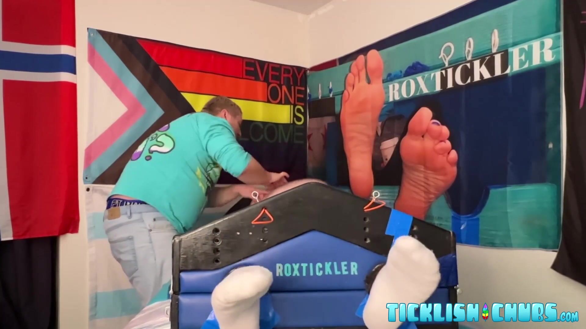 Obese dom Matt seduced Ryan into foot and figure tickling