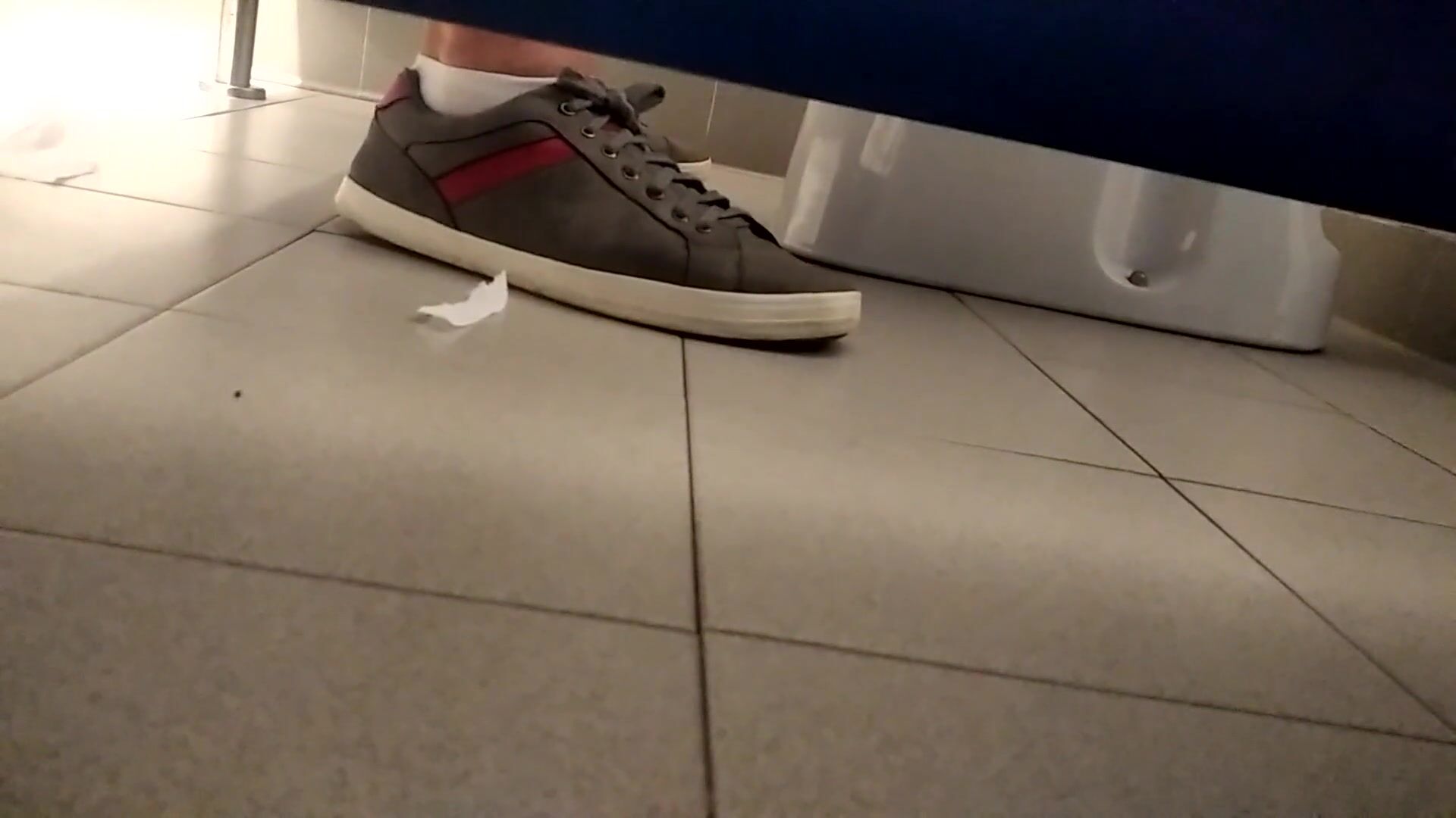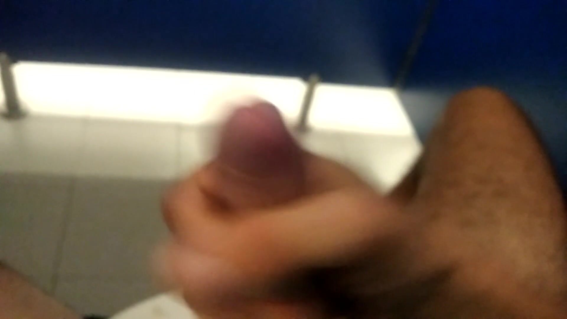 Pig Fellow Spunks in the Public Wc while Stagging on a Stranger Pissing Next Door