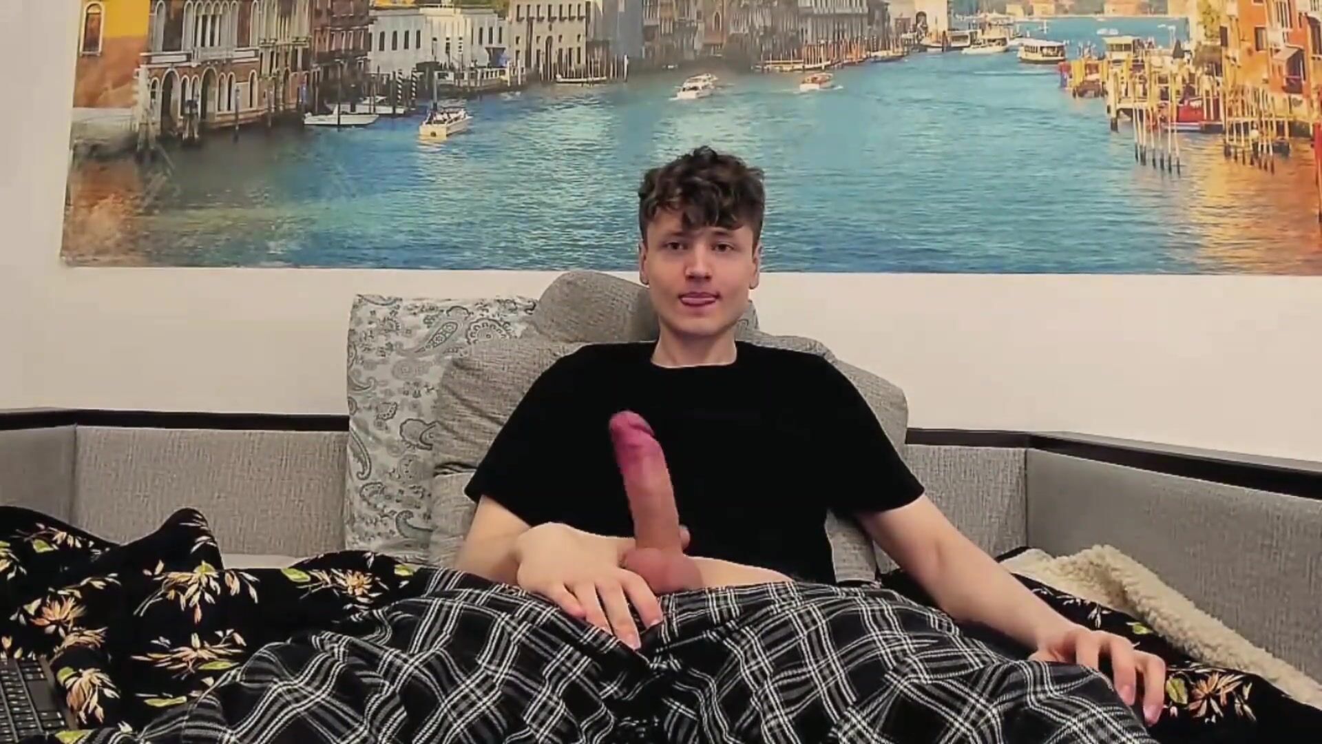 Ultra-Cute twink jacking off a giant pink cigar