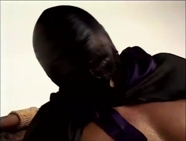 黒いストッキングを履いた男が自慰行為をし、大声でうめき声を上げる