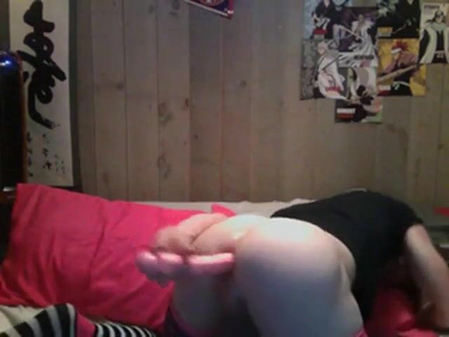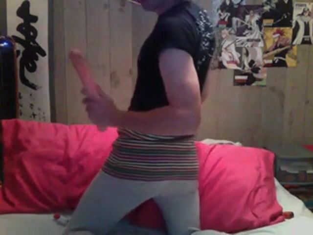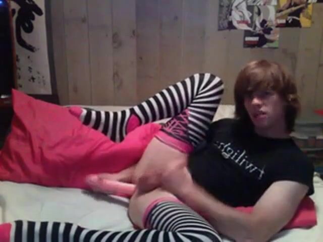 Faggot fucks his hole in preparation for real cock