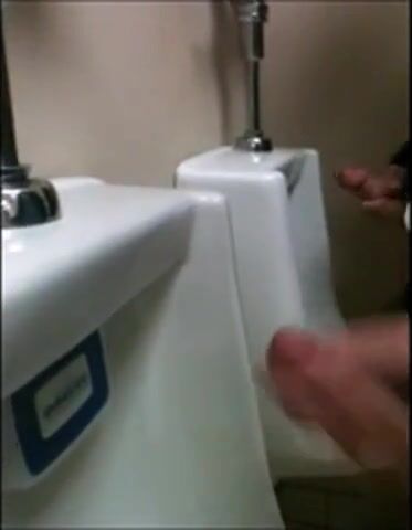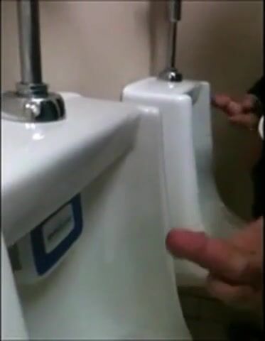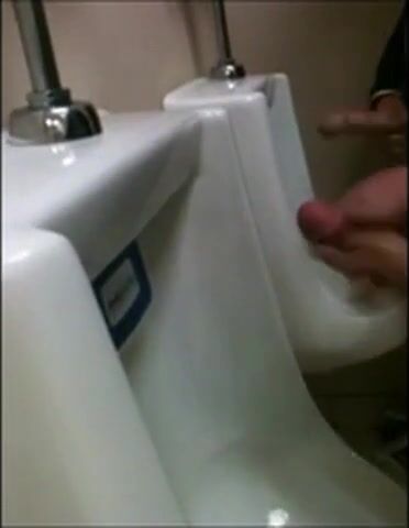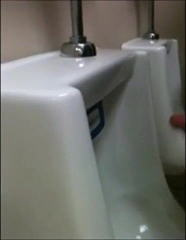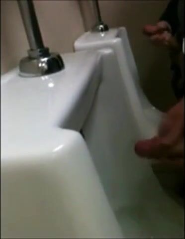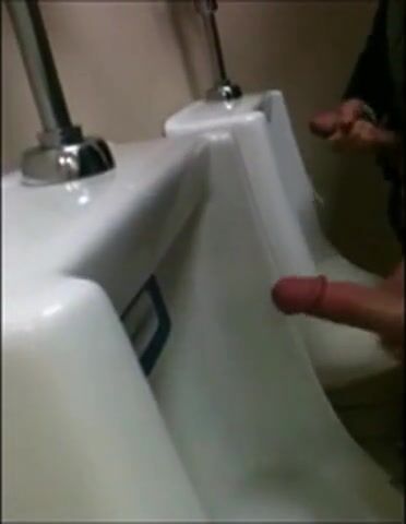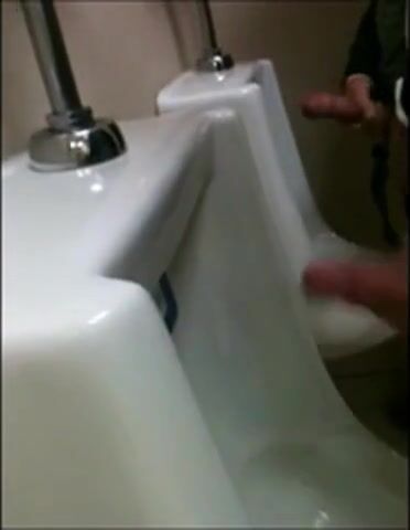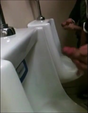 two slim dicks getting wanked at the urinals