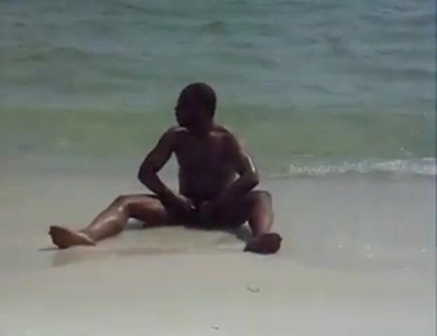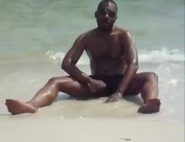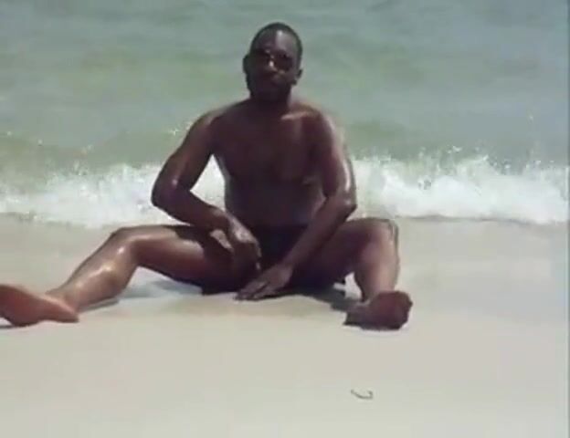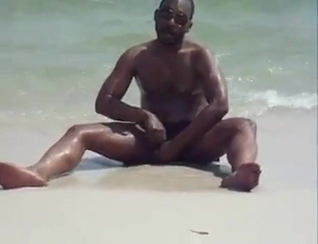 Black Amateur Strokes His Big Cock Outdoors at the Beach