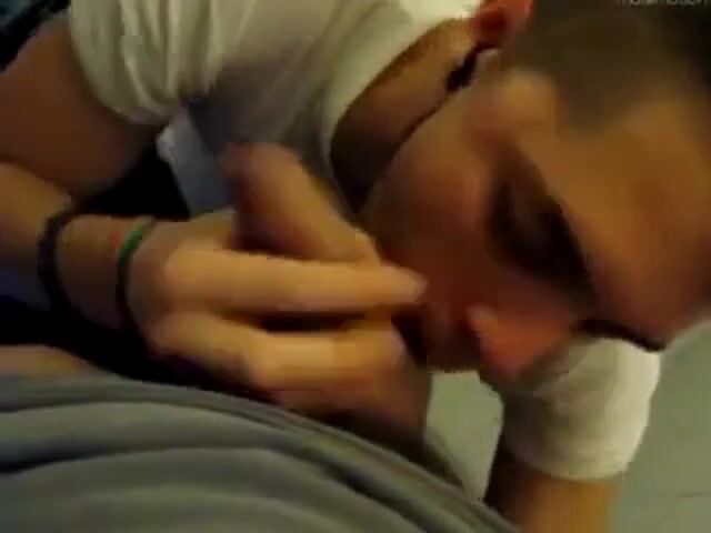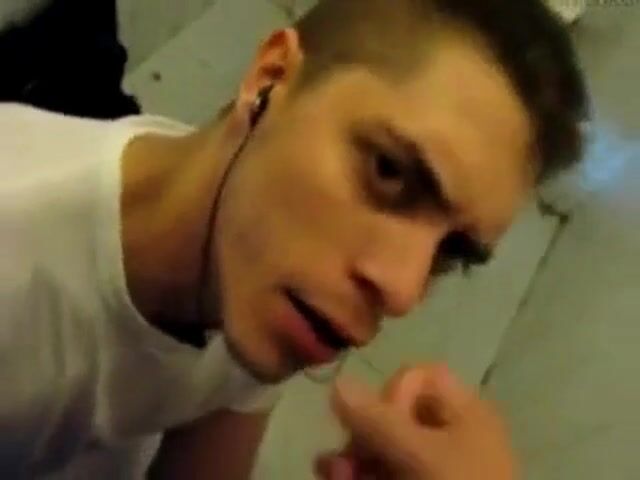 Boy sucking cock and eating cum in restroom