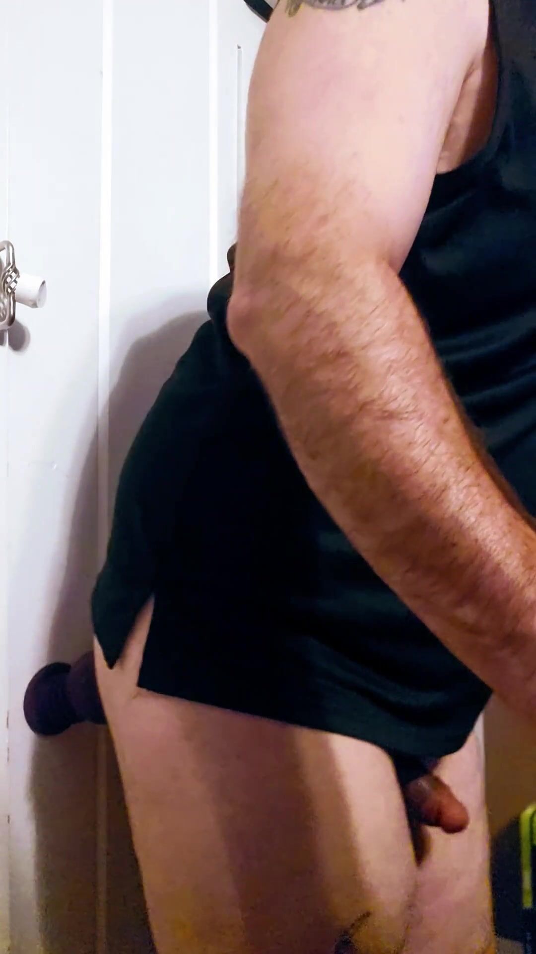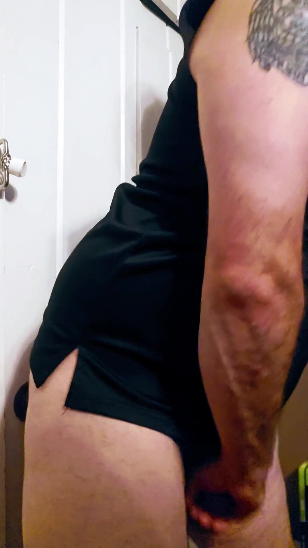 黒いストッキングを履いた男が自慰行為をし、大声でうめき声を上げる