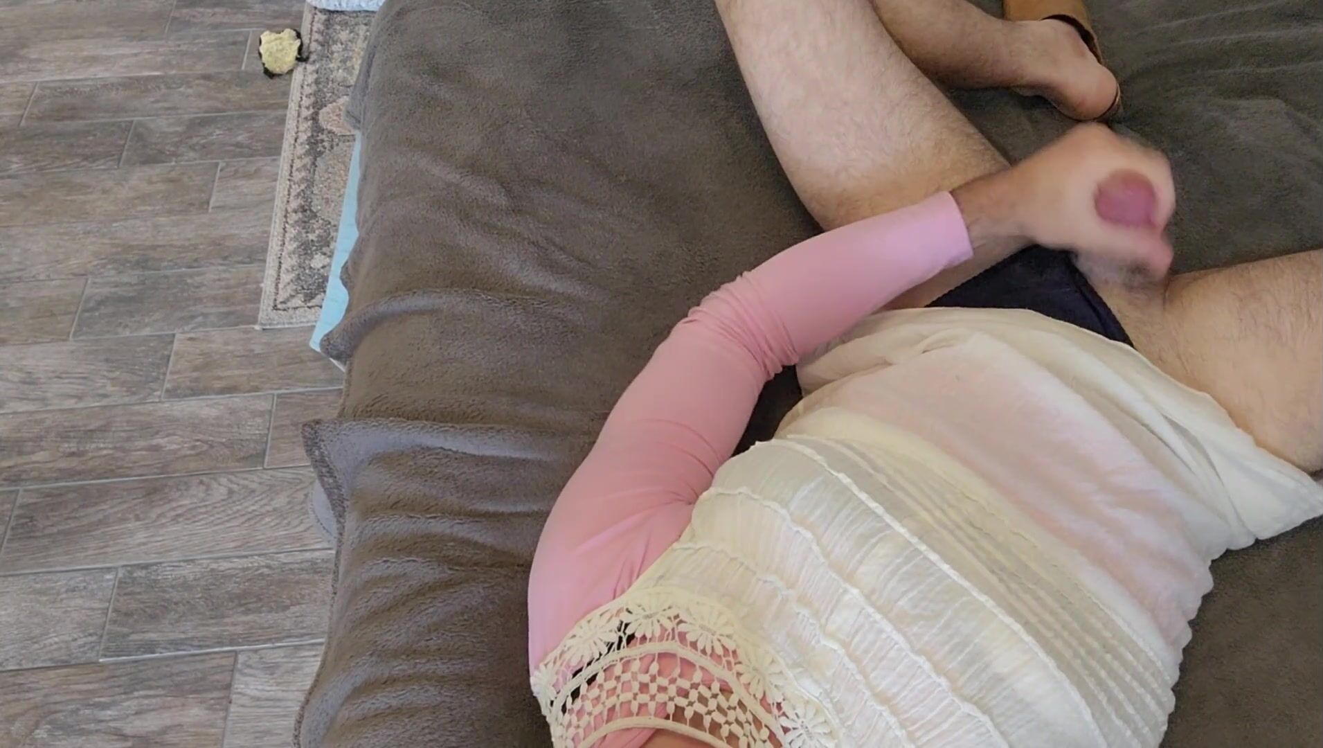 Milking knob in milky sundress and underpants