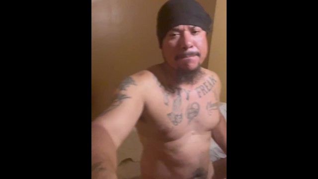 Cock-squeezing XXL ass Latino caught screwing himself with assfuck beads in jail cage