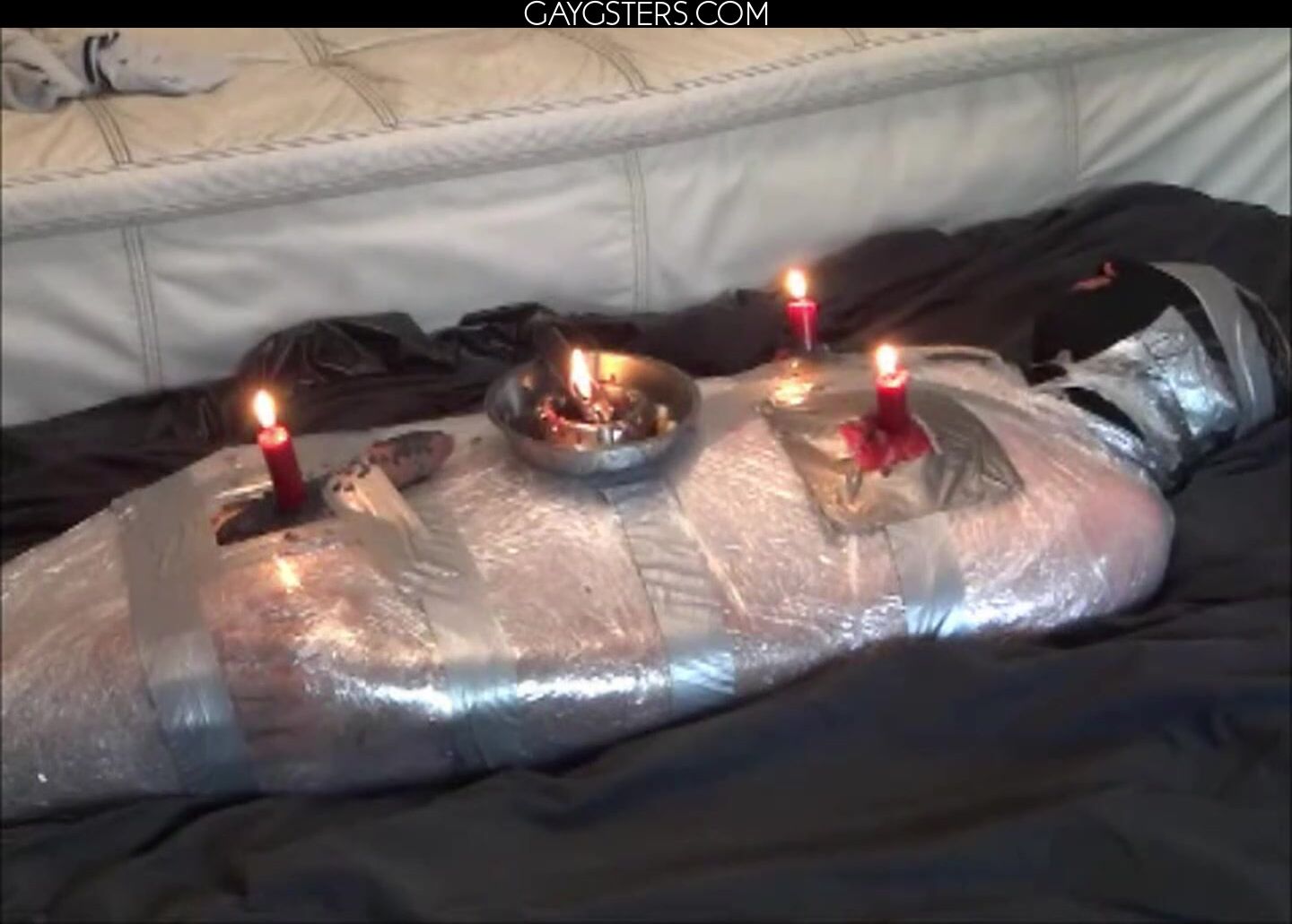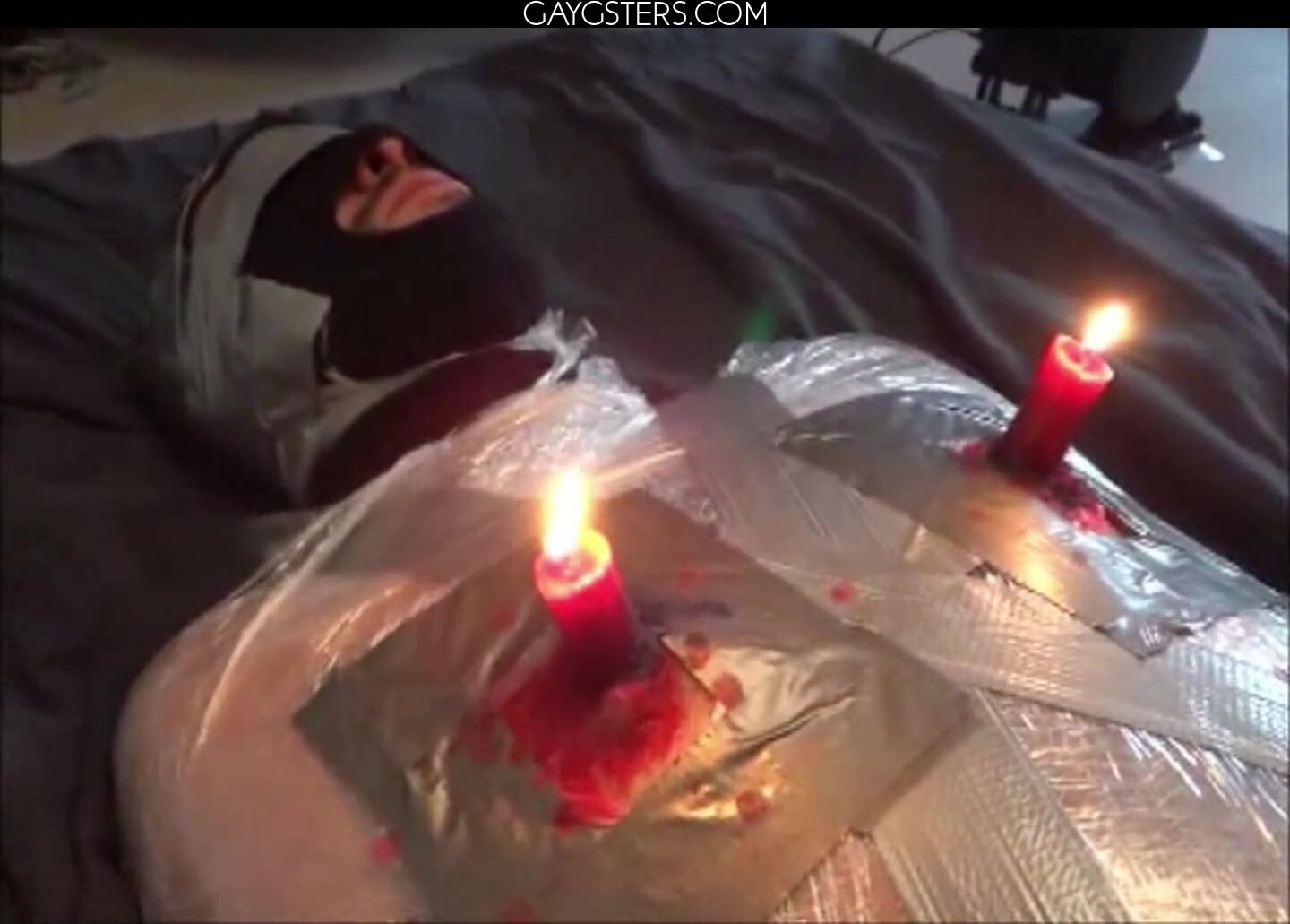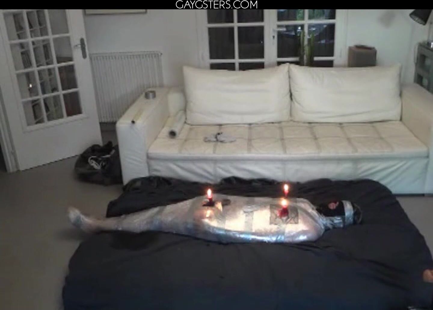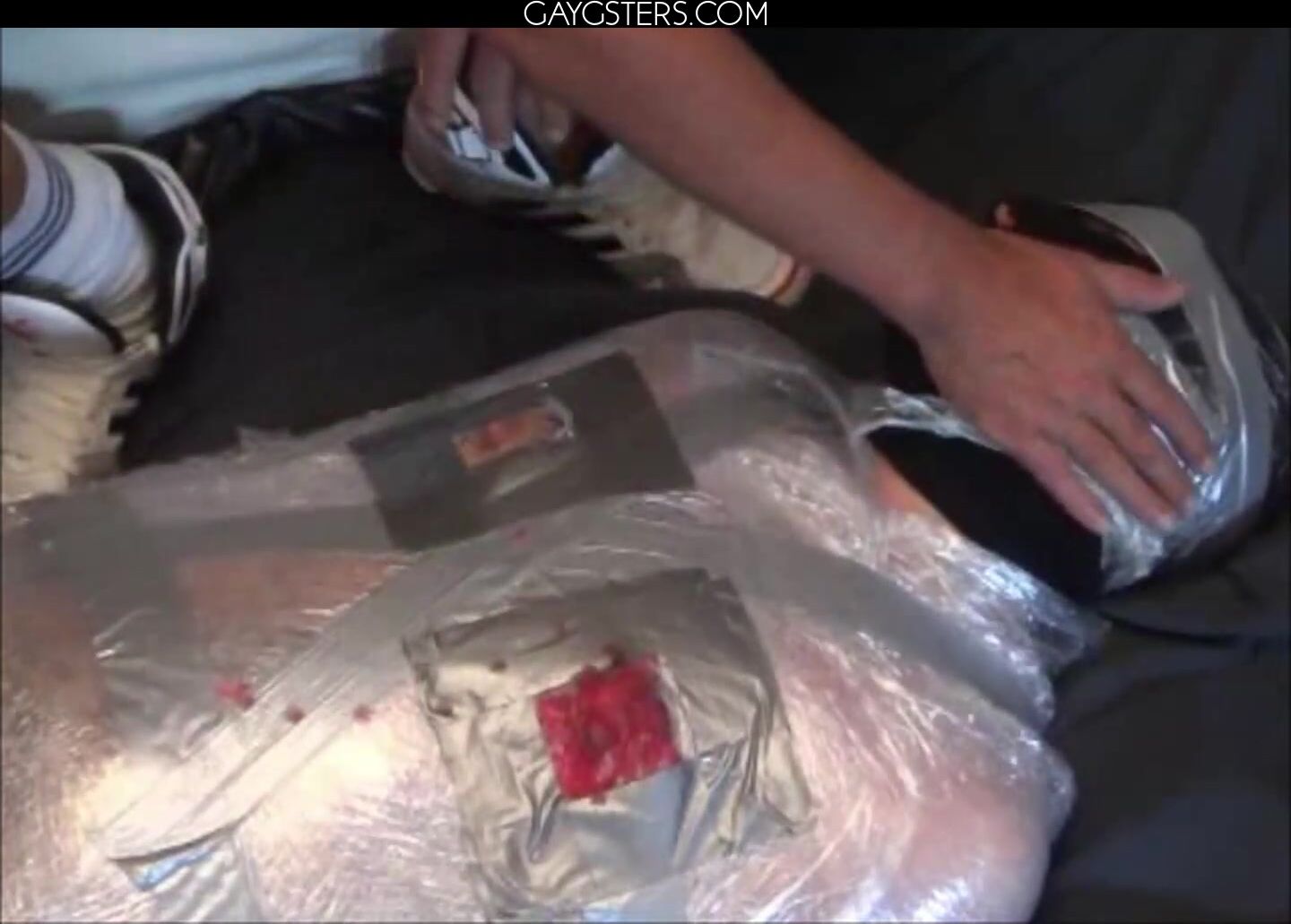 黒いストッキングを履いた男が自慰行為をし、大声でうめき声を上げる