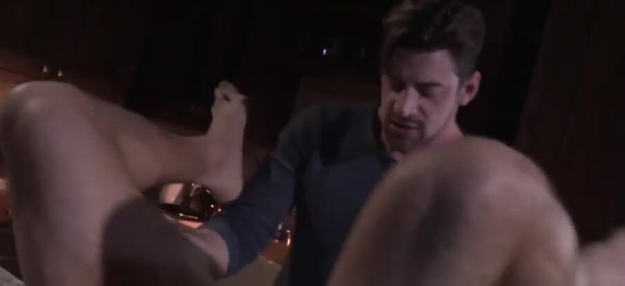 黒いストッキングを履いた男が自慰行為をし、大声でうめき声を上げる