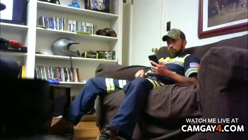 elderly Bearded fellow Stroking In web cam