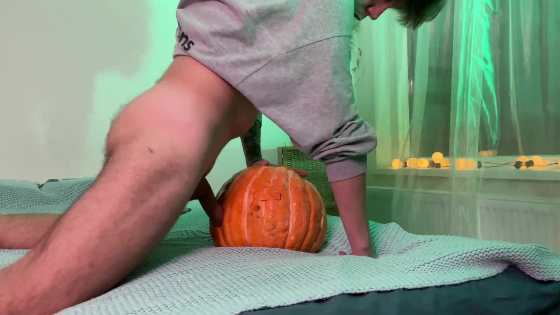Harry poked a Halloween pumpkin with a yam-sized meatpipe while Jen was peeking, then Jon framed his backside