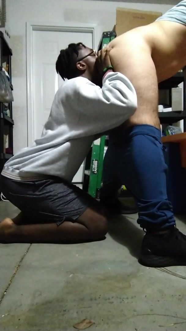 Romping my pal in his garage while family home